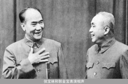 侯先生1955年進(jìn)入中國廣播說唱團(tuán),在之后的幾年間,侯寶林為中央人民廣播電臺表演錄制了大量的相聲節(jié)目,同時還和同事們一起深入工廠、農(nóng)村和全國各地演出。相聲搭檔以同團(tuán)的郭啟儒和郭全寶最為默契,侯寶林與郭啟儒還一起加工表演了許多反映現(xiàn)實生活的新相聲,如《夜行記》、《離婚前奏曲》等。同時還對一批舊有傳統(tǒng)節(jié)目進(jìn)行了重新整理加工、推陳出新,成為膾炙人口的相聲佳作。其中《關(guān)公戰(zhàn)秦瓊》曾受到毛澤東、周恩來、陳毅等黨和國家領(lǐng)導(dǎo)人的高度贊譽(yù)。