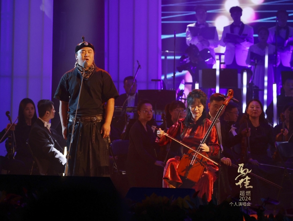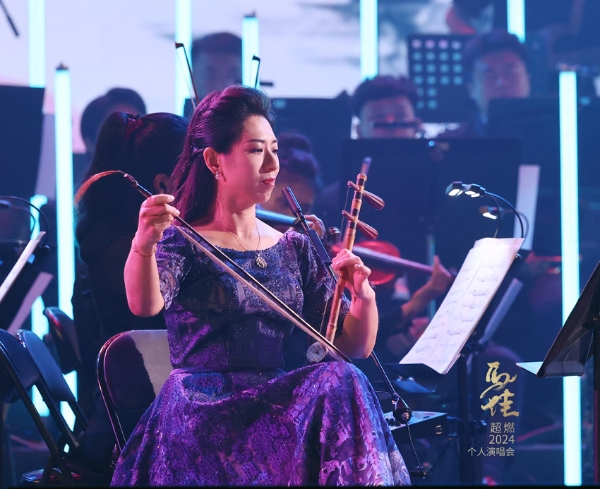 同時,來自《聲入人心》的七位兄弟也齊聚一堂,與馬佳共同演唱了經典曲目《不說再見》和《前方高能組曲》,為整場演出增添了無限活力。馬佳與呼麥演唱家德格金一起演唱《烏蘭巴托的夜》,展現了獨特的民族音樂風格,而候愷弈的馬頭琴演奏更是為現場增添了一絲悠遠與古韻,讓觀眾仿佛置身于遼闊的草原。嗩吶演奏家周藝翔和琵琶演奏家張瑋祺合奏《云宮迅音》,胡琴演奏家孔偉娟演奏《武家坡2021》,為整場演出注入了更多的傳統創新元素。中國廣播藝術團青年歌唱演員王紫凝帶來的《Rolling in deep》、《The Prayer》,讓每位觀眾都感受到激情與感動的交織。整場演出不僅展現了馬佳的音樂才華,也體現了各位音樂家對音樂的熱愛與追求,令人難以忘懷。