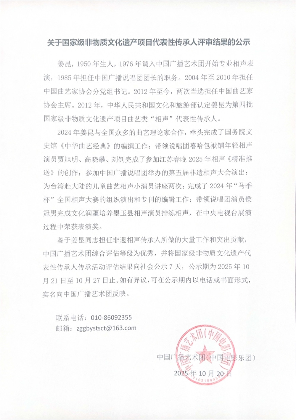 關于國家級非物質文化遺產項目代表性傳承人評審結果的公示